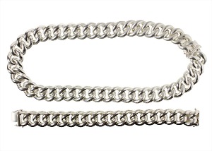 lot: necklace and bracelet white gold 585/000, necklace, integrated box clasp with 2 safety catch, width = 4.0 mm, lenght = 40.3 cm, bracelet, integrated box clasp with 2 safety catchs, width = 11.2 mm, lenght = 19.3 mm, total 68.0 g
