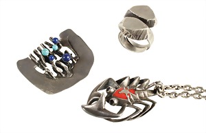 pendant, "TEODOR FAHRNER", ART-DECO around 1920/21, silver 800/000, signed: T F 800, black stone (faceted), markasites, black enamel, height = c. 39.7 mm, nice good condition ! similar picture: literature: Arnoldsche "THEODOR FAHRNER SCHMUCK", 2.8, page 187