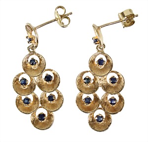 ear pendants, Egypt, yellow gold 750/000 (checked), intarsia: among others lapis lazuli and turquoise, height = c. 45.0 mm, total 10.5 g
