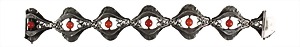 Brosche, ART-DECO 1920er Jahre, Silber 835/000, schwarzes Mattemaille, 3 Korallenboutons, ca. 53,8 x 5,0 mm Für diesen Artikel ist ein Versand in nicht EU-Länder leider nicht möglich !