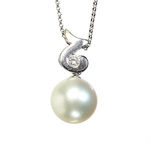 pearl necklace, white gold 585/000, clasp: 1 Akoya pearl diameter = 5.8 mm, 6 pieces 8/8 diamonds c. 0.18 ct white, Akoya pearls diameter = c. 8.5-9.0 mm, lenght = 50.0 cm, nice luster !
