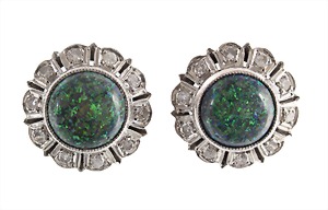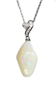fine necklace early 20th century, gold filled, 4 opals worked into a cloverleaf, white faceted stones, filigree wire construction, height = 18.3 mm, trace chain with 2 small box clasps, lenght = c. 47.5 cm, (one segment can be put out!)