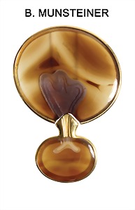 Brosche, "THEODOR FAHRNER" Pforzheim um 1910-15, Silber 935/00, sig: 935 TF, 1 grüner Calcedon, Muschel/Perlmutter, ca. 42,9 x 29,8 mm, plastisch schön ausgearbeitete Blätter ! Literatur bei Arnoldsche "THEODOR FAHRNER SCHMUCK" S. 146/1477 (ähnlich !)