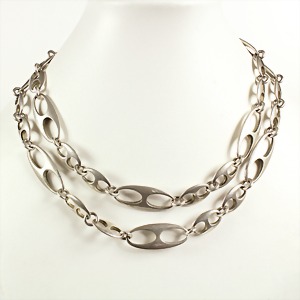 Collier-Kette, "THEODOR FAHRNER" Pforzheim der 1930/40er Jahre (Filigranschmuck), Silber 925/00, verg., sig.: ORIGINAL FAHRNER TF 925, Markasiten, vorne: H = 14,0 mm, L = 42,0 cm, Literatur bei Arnoldsche "THEODOR FAHRNER SCHMUCK", S. 226-229