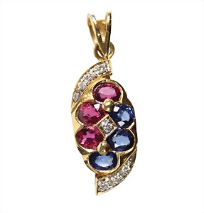 pendant, art nouveau around 1910, yellow gold 333/000, small vividly colored opal, above it a red stone (faceted), filigree wire construction, height = 35.9 mm
