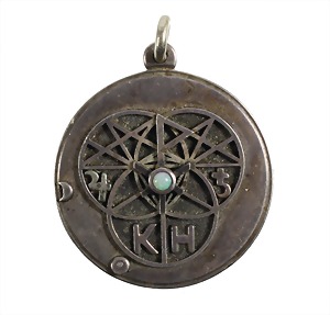 Anhänger FREIMAURER Abzeichen Ende 19.Jhd., GG 585/000, verschiedene Symbole: Hammer, Lineal, Winkelmaß u. ein kl. Bibel als Medaillon gearbeitet (Medaillon rückseitig mit Zirkel u. Winkel graviert), H = 34,5 mm, total 2,3 g