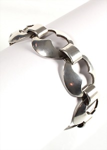 Armband, Silber, aus der Goldschmiede Kienast (Worms), 4 Paar Grandeln, Oberfläche in Schweißtechnik gefertigt, B = 38,0 mm, L = 19,5 cm, ein Unikat !