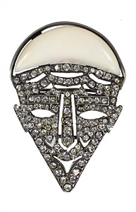Brosche im ART-DECO Stil (England), Silber 925/000, signiert: B & W, Gesicht mit Strass besetzt, Elfenbein, ca. 32,2 x 47,2 mm Für diesen Artikel ist ein Versand in nicht EU-Länder leider nicht möglich !