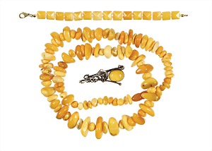 lot: amber BUTTERSCOTCH, 1 pin, silver 800/000, lenght = 55.5 mm, 1 bracelet, lenght = 20.0 cm, 1 chain with twist-lock, lenght = c. 69.0 cm, total 97.6 g