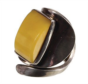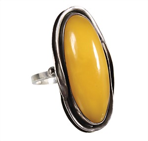 ring, silver, amber "BUTTERSCOTCH" 12.1 x 20.2 mm, ring width c. 54, total 13.9 g.