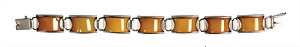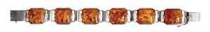 amber bracelet, silver 835/000, signed SBM, 6 pieces rectangular amber cabochon, separate box clasp with safety catch, width = 19.0 mm, lenght = 19.3 cm, worn !