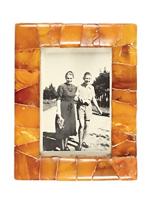 picture frame, amber "BUTTERSCOTCH", rounded amber plates on a wooden frame, c. 9.6 x 124.5 x 13.0 mm, total 101.0 g
