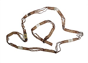 string of pearls (fragment) early 19th century, glass beads, gilded metal beads, partially pierced produced, original clasp, width = 10.5 mm, lenght = c. 111.0 cm
