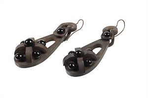 a pair of ear pendants around 1870/80, jet ? graphic worked, always decoratedwith 6 onyx balls , height = 59.0 mm