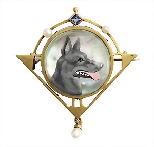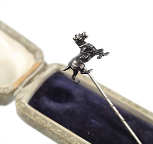 pin, dog, silver 800/000, signed KGS (Karl Gustav Scheid (Vienna), plastic worked dog (black patinated), lenght = 61.5 mm, with contemporary casket !