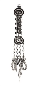 chatelaine around 1800, German ? iron, chatelaine for hook into the belt/waistband, 3-fold and 4-fold hanging chains, the both outer with tassels are made of iron balls, the both in the middle with carabines, 1 key for verge fob watch (end is broken off), height = 15.7 cm, nice condition !