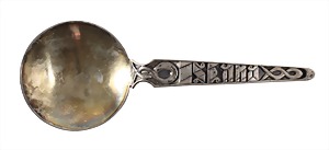 big splendor spoon, probably Scandinavia, silver 925/000 not signed, in the conic handle stylized swans, relieflike worked, bowl diameter = 81.0 mm, lenght = 21.7 cm, total 107.6 g