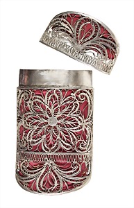 Etui 2.Hälfte 19.Jhd., Silber 13 Lot, sehr feine Arbeit aus kordierten Drähten, innen mit Stoff ausgeiegt, Deckel abnehmbar, ca. 42,0 x 82,5 x 18,5 mm