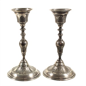 1 Paar Kerzenleuchter Anfang 19.Jhd., Silber, sig. GS und P (in einem Wappen), Blätterdekor (strukturiert), D = 82,1 mm, H = ca. 16,0 cm, total 252,3 g