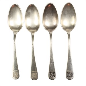 4 coffe spoons (militaria), World War I 1914-15, 90 silver plating, signed BRUCKMANN, WK Iron cross, lenght = 14.7 cm