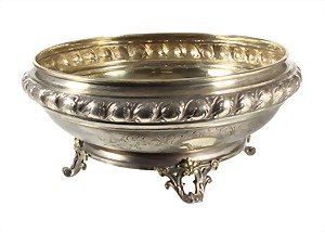 bowl late 19th century, silver 880/000, inside gilded, signed: H. MAYEN & Co, all round floral frieze, from down below elaborate engraved, exposed feet, diameter = 24.0 cm, height = 10.5 cm, total 864 g
