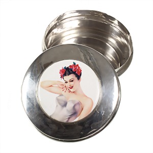 Dose, Birmingham 1903, Sterling Silber 925/000, sig. L & S (Levi & Salaman Birminghan), PIN UP aus den späten 1930er Jahren, Bajonett-Deckel, D = ca. 82,5 mm, H = ca. 45,5 mm, total 95,7 g