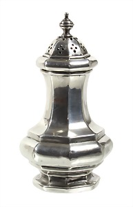 salt/pepper caster, Birmingham 1924, Sterling silver 925/000, signedL & D (Louis Dessouter ? Birminghan) , octagonal case with cover, height = c. 91.0 mm, total 48.1 g