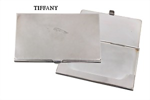 Etui für Visitenkarten, sig. TIFFANY & CO SILVERPLATE, Gravur oben: JAGUAR Daimler, Scharnierdeckel, ca. 53,2 x 57,9 x 5,8 mm