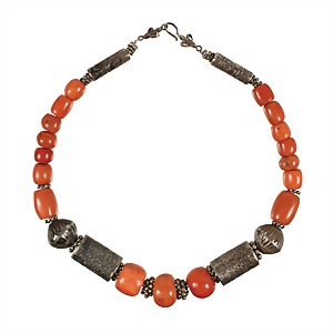 Korallenkette 1.Hälfte 20.Jhd., Tibet ? SILBER, Koralle, vorne D = ca. 19,0 mm, Kette, L = 42,5 cm, total 91,6 g Versand nur innerhalb der EU !