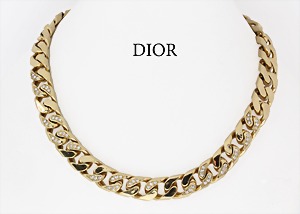 curb chain, CHRISTION DIOR, signed Chr. Dior, gilded, studded with colorless rhinestones, width = 12.6 mm, lenght = 43.5 cm