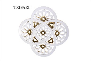 Brosche, TRIFARI, Metall gelbfarben, sig. TRIFARI, weißer Emaillelack, ca. 66,0 x 66,0 mm, schöner Zustand !