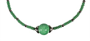 necklace, ART-DECO 1930/'40s, metal chromium-plated, green white speckled glass, ball with a diameter of = 23.3 mm, between the lentils are chromium-plated balls, twist-lock, lenght = 43.5 cm