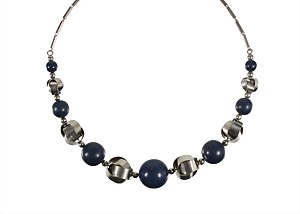 necklace, BENGEL Idar-Oberstein, unsigned, ART-DECO 1930s, chromium-plated metal , graduated galalith balls (lapis-coloerd), chain: stern circular cylinder, lenght = 43.0 cm, literature:BENGEL ART DECO UND SCHMUCK