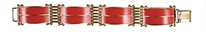 Armband, ART-DECO 1930/40er Jahre, Metall goldfarben, orangerotes Galalit/Bakelit, Klappschließe, B = 24,2, L = 19,5 cm