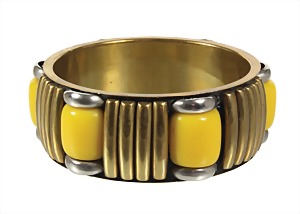 Armreif, Amerika, ART-DECO der 1930er Jahre, Metall gelb/weißfarben, gelbes Bakelit, B = 28,6 mm, innen D = 67,0 mm