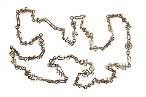 limited designer necklace by D`ARNALDO POMODORO born 1926 Maricano di Romagna, Italy, necklace: DIE MINIATUR SCULPTUREN DES COSMOS limited: 74/150, signed CERTIFICAT PARIS 20 Octobre 1983, many small sculptures with different surface textures, clasp with safety, lenght = c. 142.0 cm, original casket