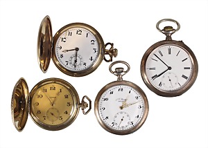 Lot: 4 Taschenuhren, u.a. LAMINOR Geneve, D = 50,0-53,3 mm, ungeprüft !