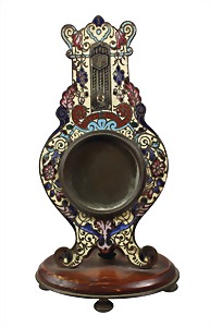 fob watches stand, France late 19th century, colored enameled, base wood and metal, on 4 feet, height = c. 16.5 cm, made for the Russian market?