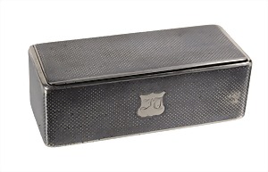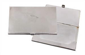 case for calling cards, signed TIFFANY & CO SILVERPLATE, engraving at the top: JAGUAR Daimler, hinged lid, c. 53.2 x 57.9 x 5.8 mm