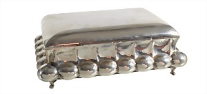 Ausgefallene Zigarren-Schatulle, Ungarn Ende 1930er Jahre, SILBER, Kugelig gearbeitetes Gehäuse, nach oben säulenartig ausgearbeitet, Scharnierdeckel, innen mit Holz ausgelegt (3 Fächer), kl. ausgestellte Füße, Maße ca. 22,5 x 17,3 cm, H = 8,0 cm, total 690 g, ausgefallen !