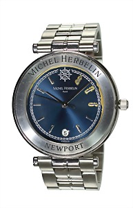 Herren-Armbanduhr, MICHELE HERBELIN NEWPORT Paris, Stahl, Quarz, Strichindex, Zentralsek., Dat. Auf 6 Uhr, Saphirglas, gedr. Boden, D = ca. 35,0 mm, Mod. 12486. BA, Stahlband mit Faltschließe, ungeprüft !