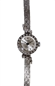 Ladies' wristwatch, ORDIAM, manual winding, white gold 585/000, 28 pieces 8/8diamonds white, stick index, pressed bottom, diameter = c. 17.5 mm, lenght = 17.0 cm, total 19.7 g, clock is running !