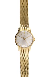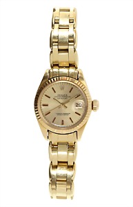 Ladies' wristwatch, ROLEX Oyster Perpedual Chronomètre, March 1976, self-winding, yellow gold 750/000, stick index, date under magnifying glass, diameter = 25.7 mm, bottom and crown are screwed, Kal: 2030, heavy produced gold ribbon with folding clasp, modelled N° 6917, standard N° 4090898, documents/certificate N°4090898 (Dusseldorf March 1976), total 80.3 g, clock is running !