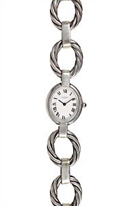 Damen-Armbanduhr, VINTAGE 1970er Jahre, Silber 800/000, sig. JEAN PERRET GENEVE, Handaufzug, röm. Index, Schmuckkrone, ovale, kordierte Armbandglieder, Klappschließe, L = 21,0 cm, total 92,1 g, schwer gearbeitet ! Uhr läuft !