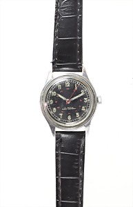 men's wristwatch, TIMOR Switzerland 1940s, manual winding, central second, cast casing (brass), screwed steel bottom, diameter = 31.0 mm (without crown), case with traces of usage, clock is running ! Timor produced clocks for the military of the British Crown, this clock was worn by a surgeon major! .
