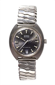 men's wristwatch, VINTAGE 1960/'70s, BWC Switzerland, self-winding 25, steel, central second, date on 6 o'clock, acrylic glass, screwed bottom, diameter = 35.6 mm (without crown), Ref. No. 753051, Cal. ETA 2783, Elasto-flexible strap, clock is running !