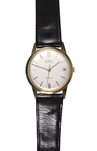men's wristwatch from the 1950/'60s, BWC, self-winding, yellow gold 750/000, stick index, central second, date on 3 o'clock, pressed bottom, diameter = 34.0 mm, Cal. AS 1581,leather watchstrap with pin buckle, clock is running !