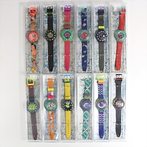 Lot: 12 Swatchuhren, Quarz, SCUBA 200, (200 m wasserdicht), mit Originalschatullen, ungetragen, ungeprüft !