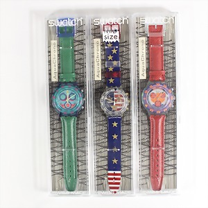 Lot: 3 Swatchuhren, Quarz, Aqua-Chronograph, (1 x30 m, 2 x 200 m wasserdicht), mit Originalschatullen, ungetragen, ungeprüft !