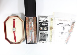1 Swatchuhr, Quarz, CHANDELIER - X-Mas Special 1992, Glasunterlage, mit Holzschatulle, ungetragen, ungeprüft !